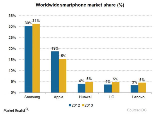 图三:全球智能手机市场份额